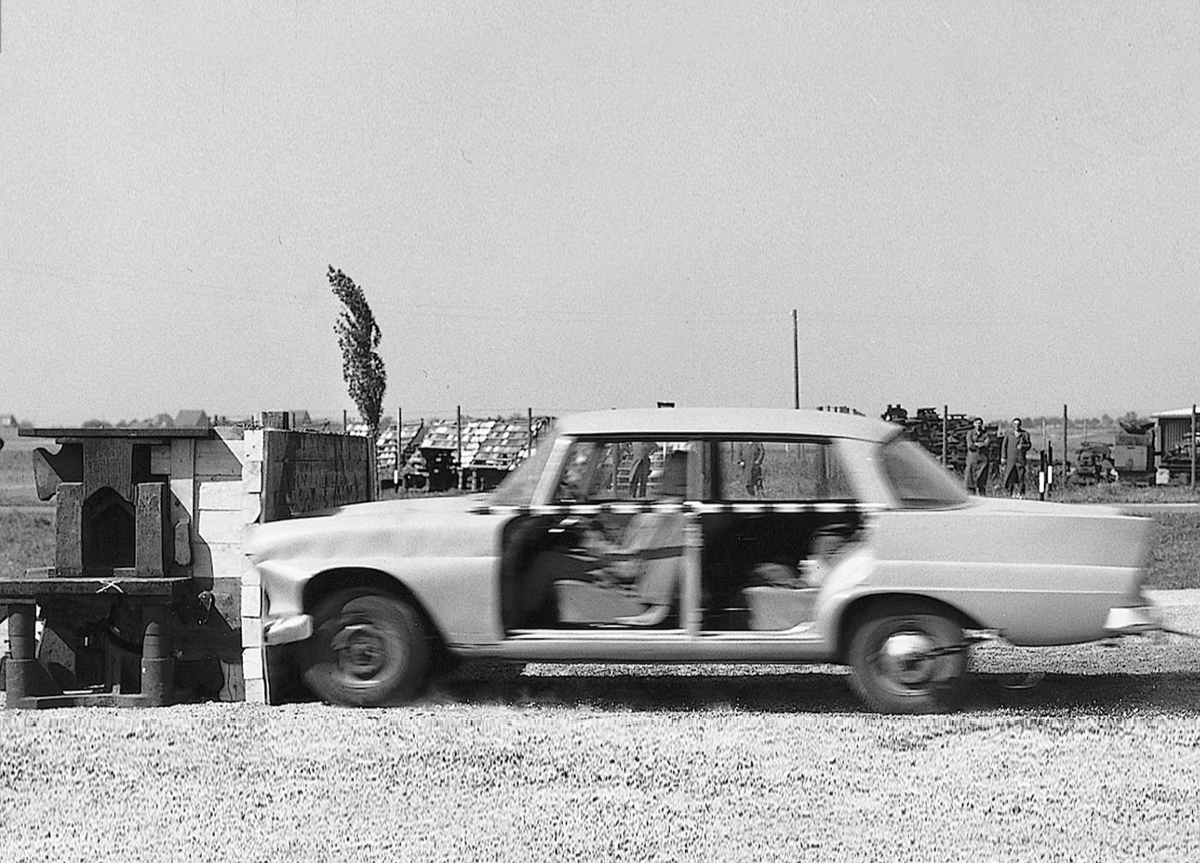 The foundations of modern crash safety: Through systematic crash testing pioneered by Mercedes‑Benz in 1959, the combination of a rigid safety cell and front and rear crumple zones established a principle that absorbs impact away from occupants. This groundbreaking research influenced automotive safety worldwide and set the standard for vehicle.